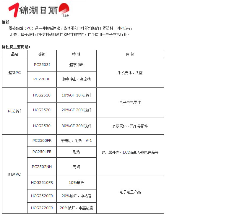 韓國錦湖日麗PC聚碳酸脂的特性和主要用途