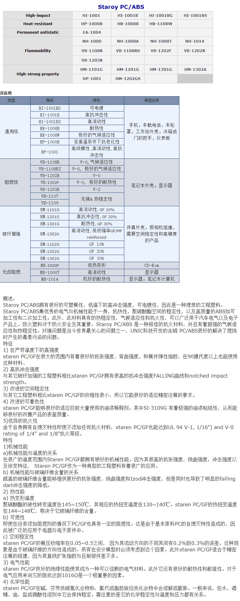 韓國三星第一毛織Staroy(PC_ABS)的特征特性及物性和應用