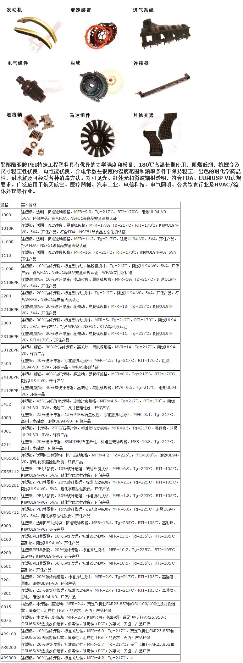聚醚酰亞胺PEI(美國GE)的基本性能參數(shù)表