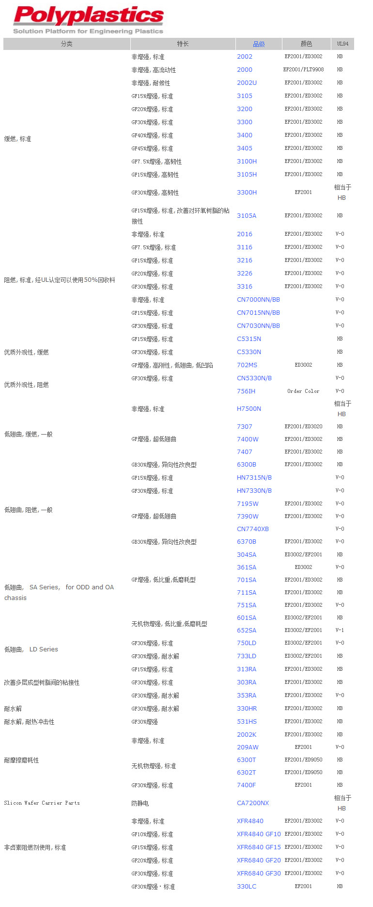 日本寶理DURANEX(PBT) 塑料產品分類與性能