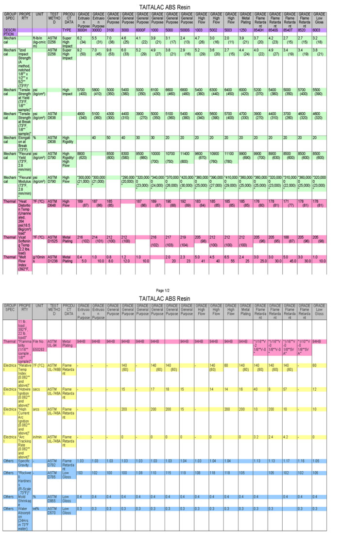 臺灣臺達(dá)ABS塑膠原料Taitalac系列物性大全