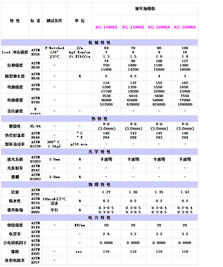 日本高達Kotex玻纖加強PC特性